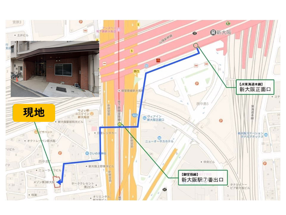 アパホテル新大阪駅南店 真向いのビル。コインランドリー横のレンガ色入り口から入れます。